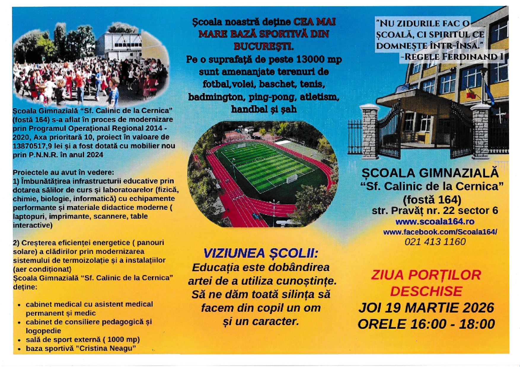 La mulți ani școlii noastre, Școala Gimnazială Sfântul Calinic de la Cernica !